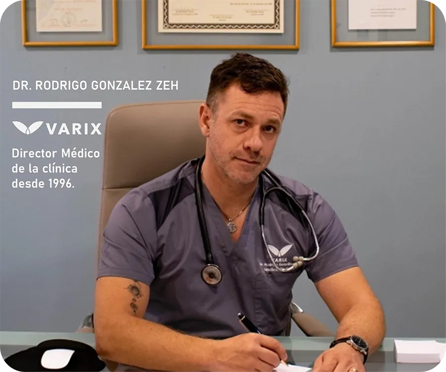 En Clinica Varix, somos especialistas en varices y sus complicaciones. Fundada en 1970 por el Dr. Miguel Gonzalez Folch y actualmente dirigida por su hijo, el Dr. Rodrigo Gonzalez Zeh, médico cirujano graduado con distinción máxima en la Universidad de Chile, formación en Loyola University, Chicago, USA, y flebología en Florencia, Italia. Actualmente es director científico de la Sociedad Chilena de Flebología y Linfología.